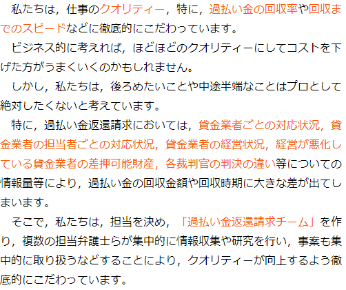 また、同じように過払い金返還請求を得意とする弁護士同士での、知識・ノウハウの共有も欠かしておりません。
